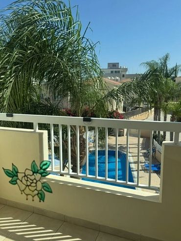 The communal pool area is surrounded by sunbeds and small tables to ease your sunbathing needs, there is also a separate children's splash pool and showers.